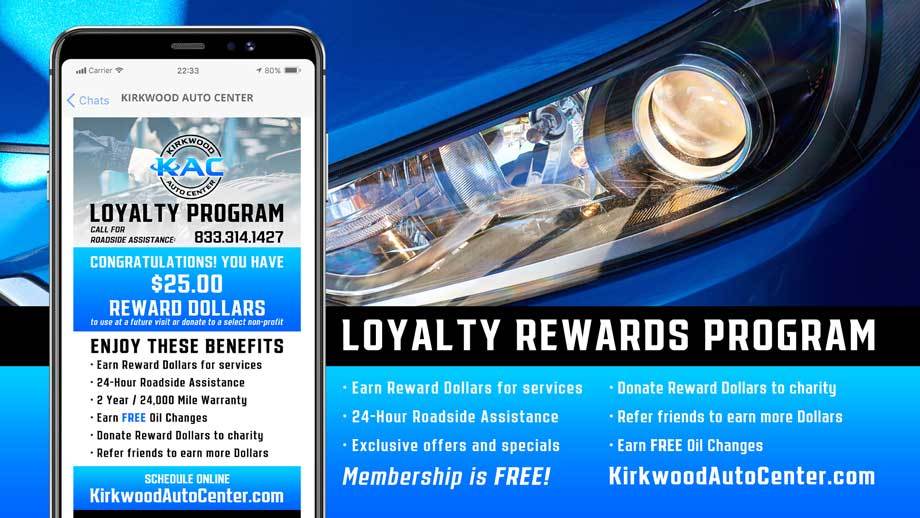 - Flexibility: Use your rewards towards any and all maintenance and repairs. Don’t worry if certain items qualify for discounts, they ALL do! Don’t want to use your rewards today, no problem! Save and accumulate your reward dollars for larger repairs in the future.